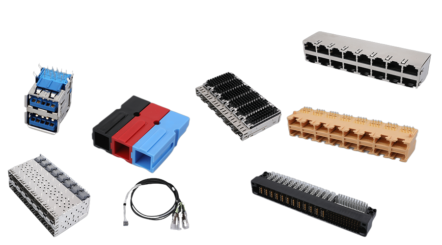 網(wǎng)絡(luò)連接器 (集成RJ45系列和普通RJ45系列)、高速連接器(SFP/QSFP/DSFP/CFP系列)、電源連接器、高速DAC和背板高速線纜組件、BTB連接器、網(wǎng)絡(luò)變壓器、RJ11連接器系列、USB&TYPE-C系列、精密五金件等。公司產(chǎn)品廣泛應(yīng)用于包括“5G/6G”在內(nèi)的網(wǎng)絡(luò)、通訊等行業(yè),并致力于滿足新能源汽車、高端裝備、智能顯示、軌道交通、機(jī)器人等高精尖終端領(lǐng)域?qū)B接器市場的需求。